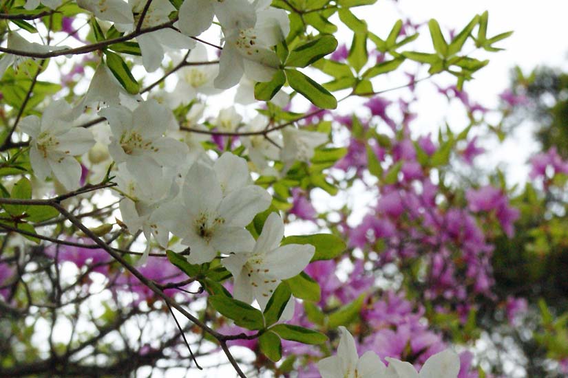 シロヤシオ(つつじ科) 花言葉は「愛の喜び」 葉が五枚輪生するので別名ゴヨウツツジとも呼ばれる |