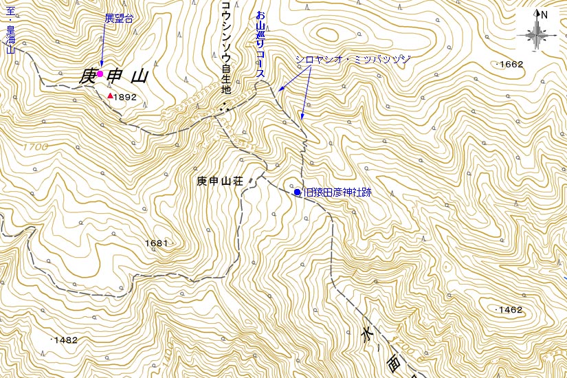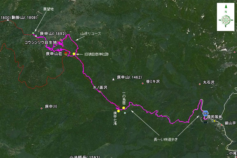 注:庚申山荘より上部はナビ不感地帯が多くルートが断続しています | ||||