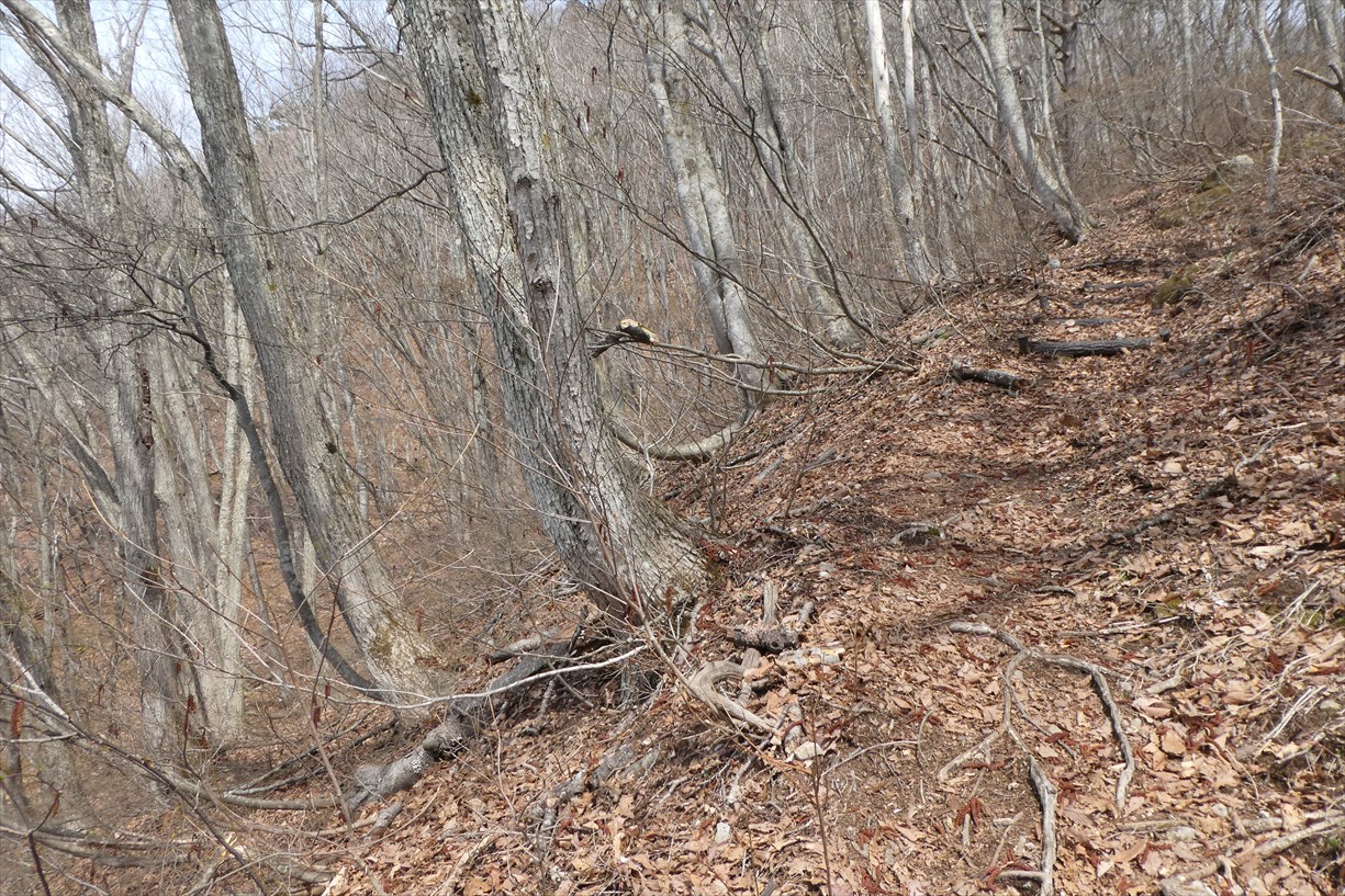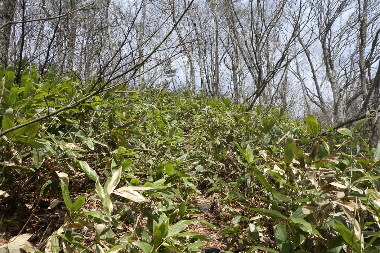 この笹道が現れると主稜線の胴結場が近い | ||||
