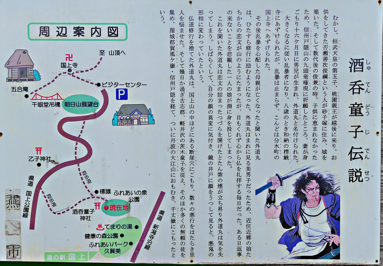 国上寺駐車場・トイレあり | 朝日展望台から千眼堂吊り橋へ | |||