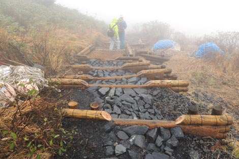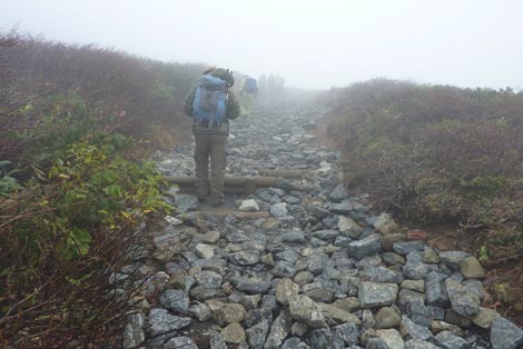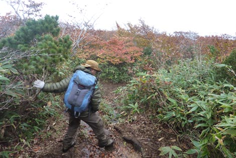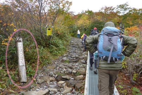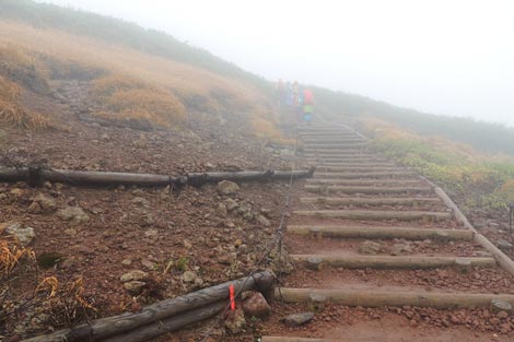 東栗駒山分岐点 | 自然保護整備中の登山道 | |||