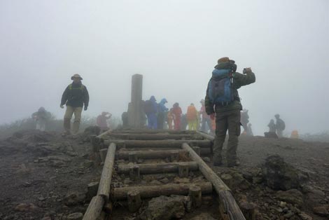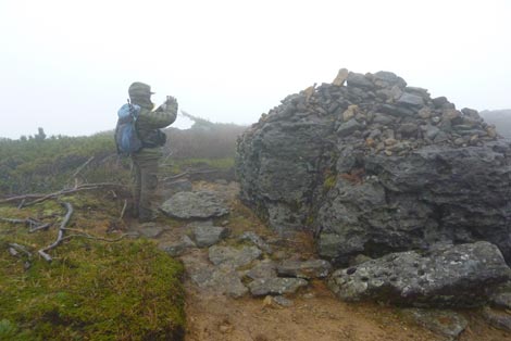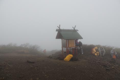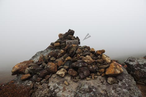 栗駒山山頂 このガスと寒さではコメントの書きようがありません (゜´Д`゜) |