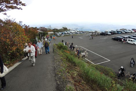 PM 12:15 観光客・登山者で大賑わいの駐車場 |