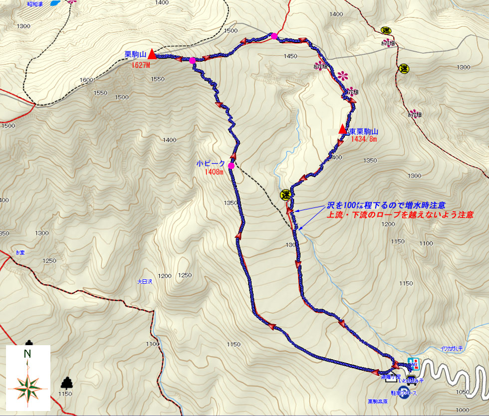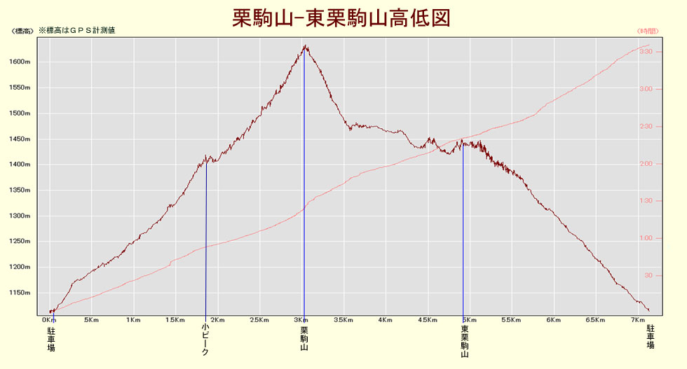 ![]() 第二駐車場標高/1110M 標高差/517M 総歩行距離/7139M |