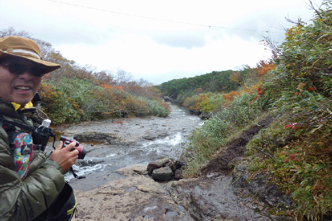 昨夜の雨にも関わらずさほど増水しておらずひと安心♪ 後日談だが、ここでHP仲間のdosannkoさんとサプライズな「すれ違いが」・・・ ↕ |