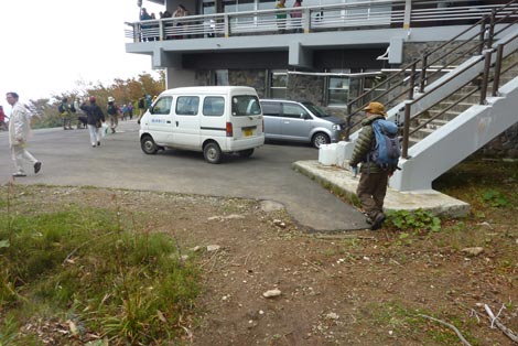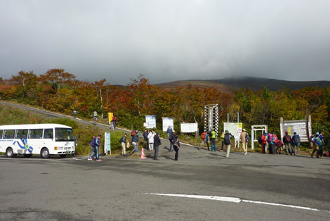 イワカガミ平 次々と到着するシャトルバスからあふれ出してくる登山者達 |