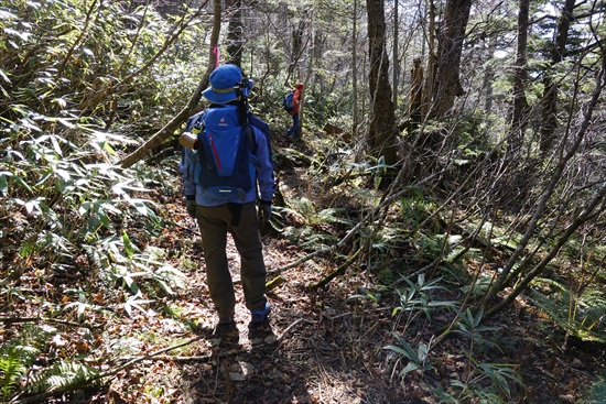 このルートもかなり歩きにくいので慎重に | 笹原になれば分岐が近い | |||