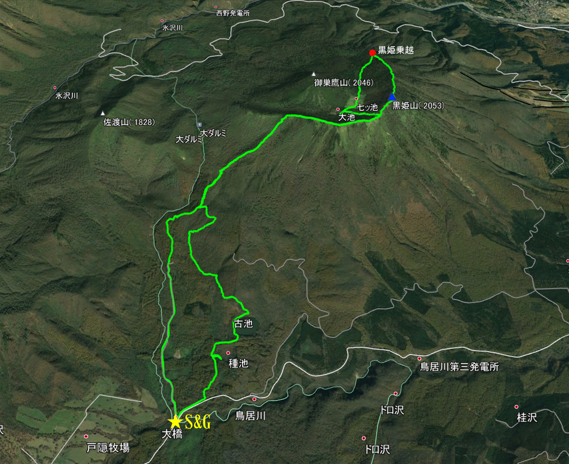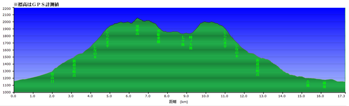 大橋駐車場標高/1140m 標高差/587m 累積標高/1313m 総歩行距離/17269m | ||||
