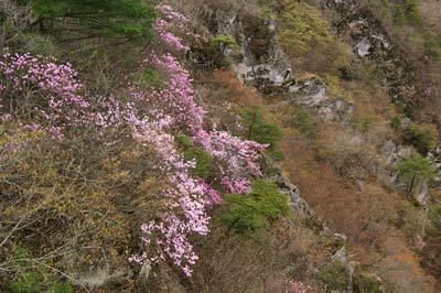 九十九谷のアカヤシオ | 上底瀬集落 | |||