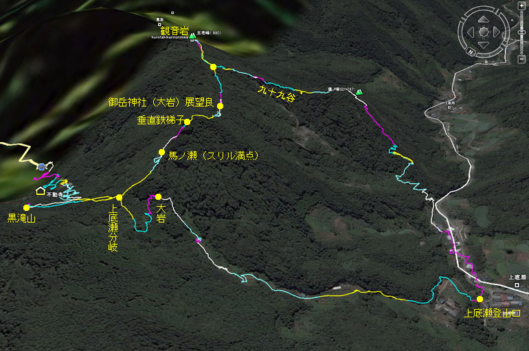 九十九谷〜上底瀬〜馬ノ背分岐点〜黒瀧山不動寺へ | ||||