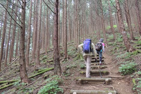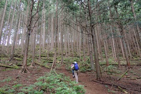 檜樹林帯をひたすら登る |