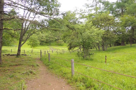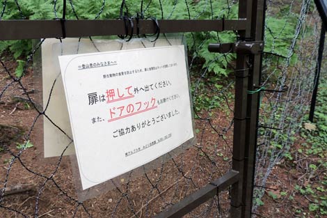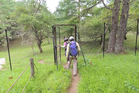アヤメ平南端のフェンスを抜けて北尾根登山道へ |