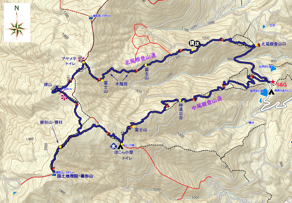 櫛形山〜裸山登山MAP