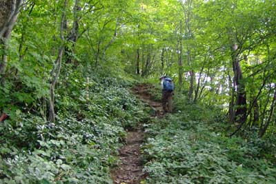 櫛形山脈の稜線に出る 左/鳥坂山 右/櫛形山 | 櫛形山への急坂 | |||