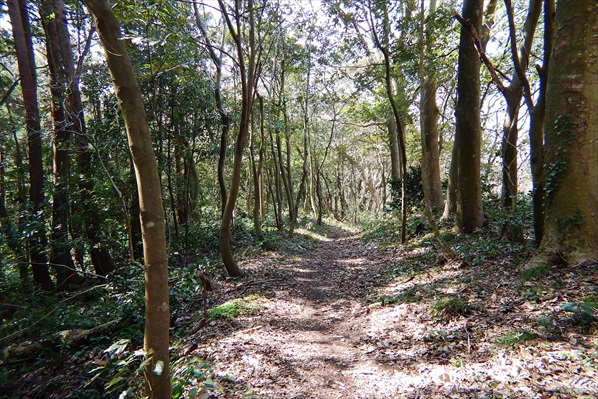要所要所に案内板・久田城址までほぼフラットな登山道が延びる
