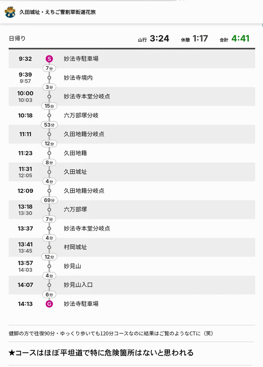 久田城址花旅コースタイム他