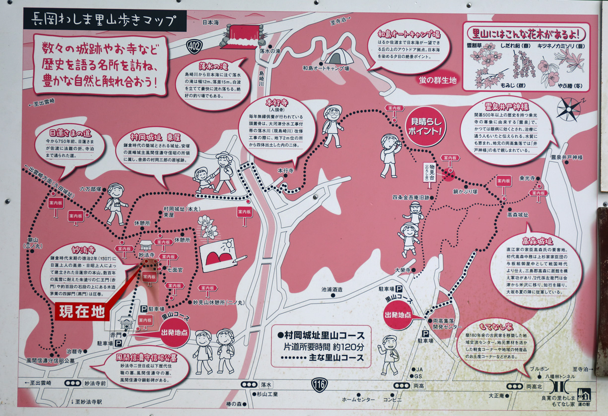 現地までの全行程&所要時間 長野発 7:00 〜 米山SAで朝食 〜 妙法寺駐車場着 9:25
