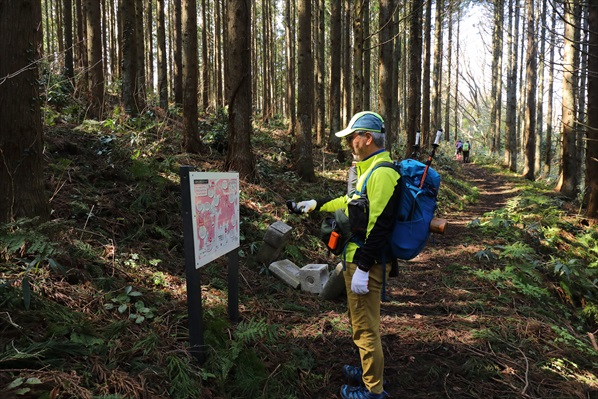 山頂から4分ほどで久田地籍分岐点に到着