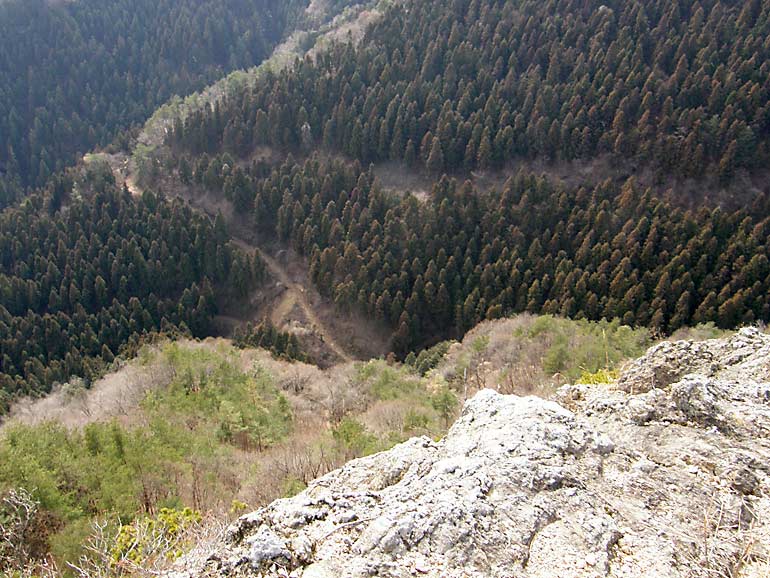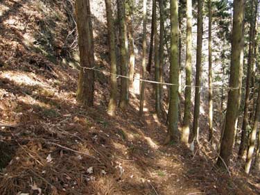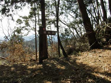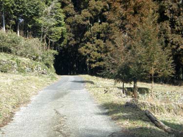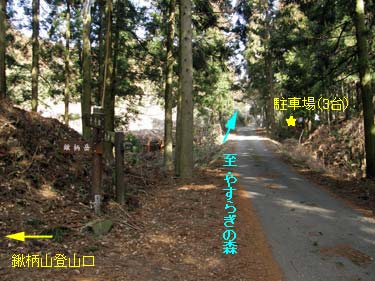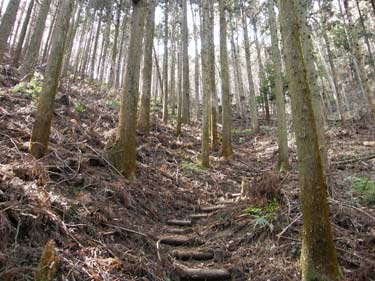 ここより登山口まで下り、登山道に入れば鍬柄岳の南肩まで杉林の一本道で特にみるものはないが