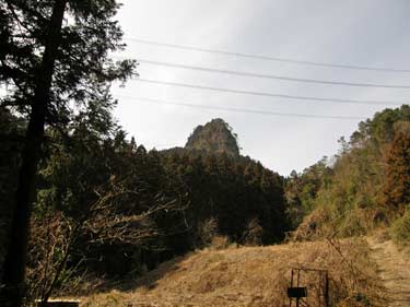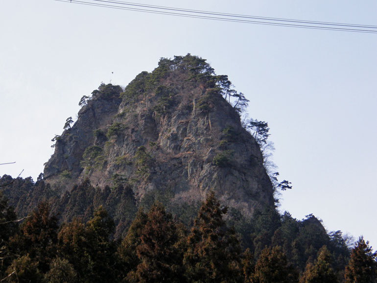 馬頭観音が建つ駐車場からは、これから登る鍬柄岳の嶮しい岩頭部を望むことが出来る。