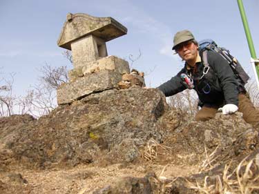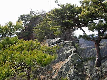 南肩から数分で岩頭部の基部にでるので指導標に従い右に折れ、〆縄を潜ると本日のハイライトである