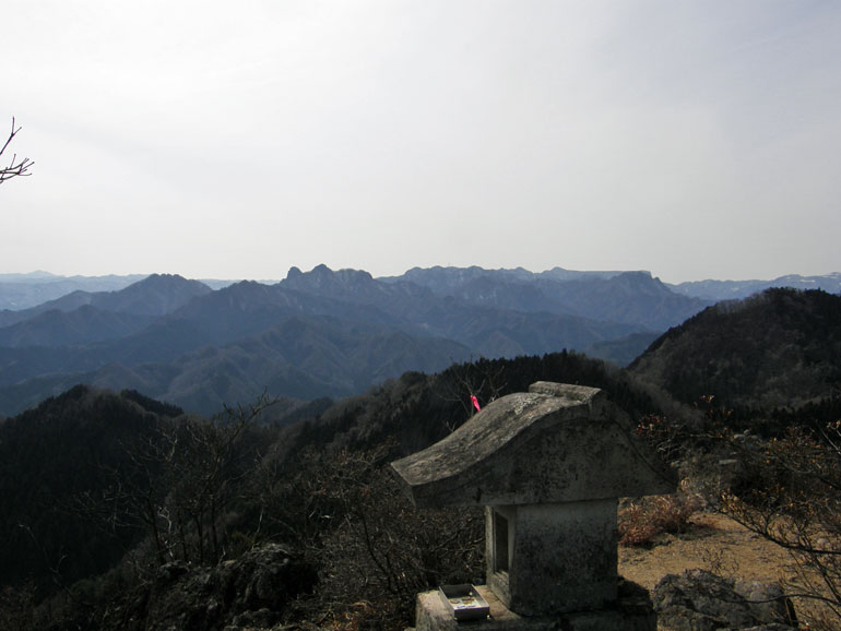 石祠が多数置かれた山頂は遮るものがひとつもないので、360°の大パノラマと絶景を堪能できる。