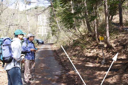 常盤ルート・鍬ノ峰登山口 駐車場から30bほど橋側に戻った地点 |
