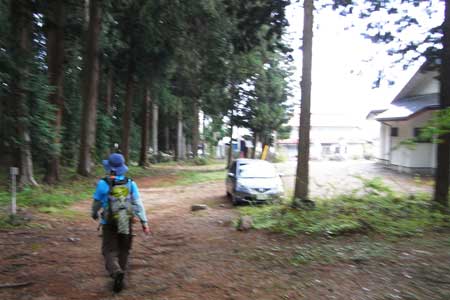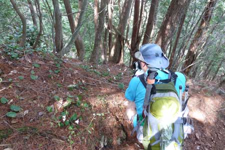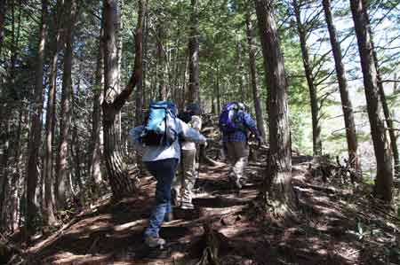 車デポ地の観音寺(仏崎)へ下山風景 このルートは大町高校山岳部が開校百周年記念に開設した登山道です。 |
