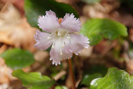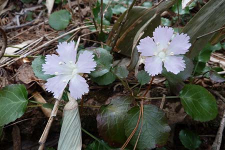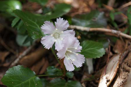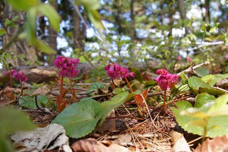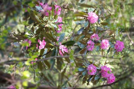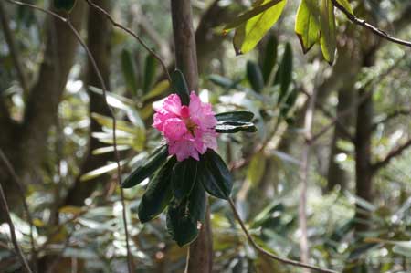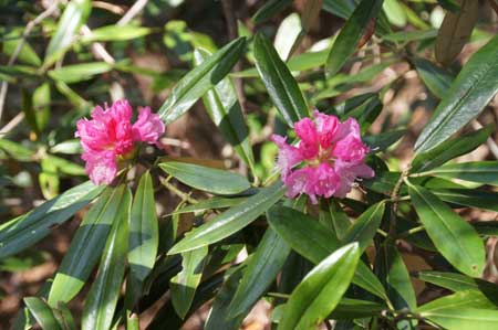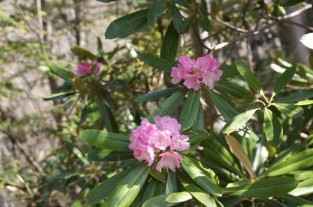標高が低くなるつれ開花したシャクナゲが多くなる | 彩りあざやかなイワカガミ | |||
