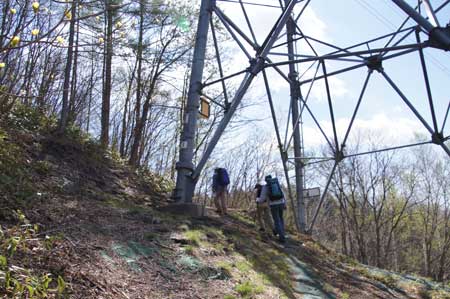 標高の低い場所ではシャクナゲが咲き始めている | 高瀬川線・18番鉄塔をくぐる | |||
