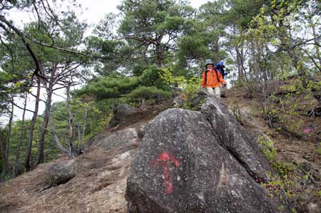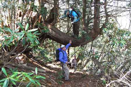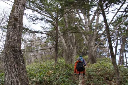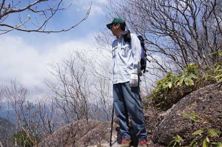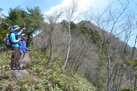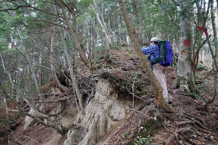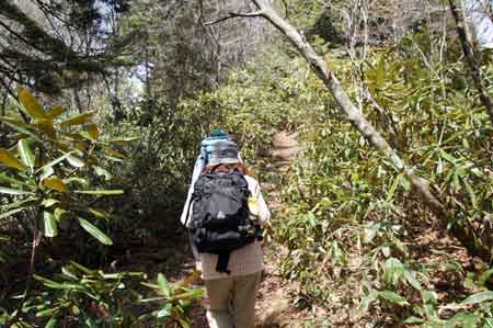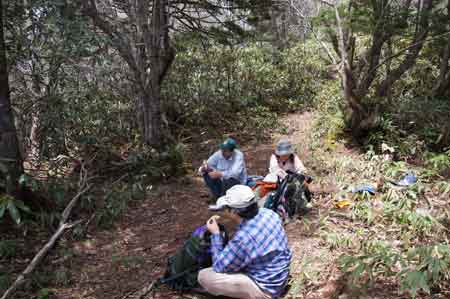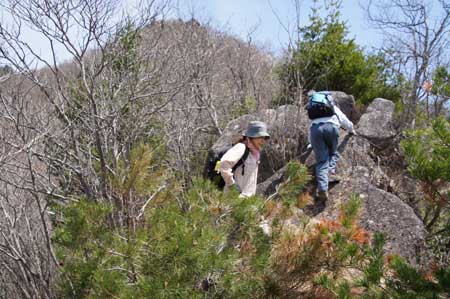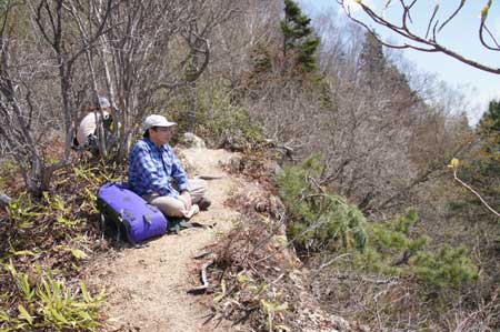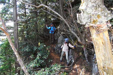 岩稜東斜面の巻き道 シャクナゲ街道/開花は今月末頃かも |