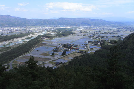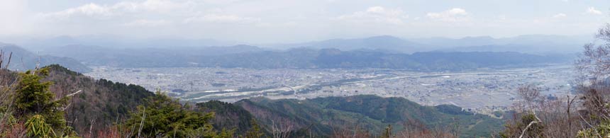 大町市街地と雨飾山・焼山・黒姫山・飯綱山・京ヶ倉(大城)方面 | ||||