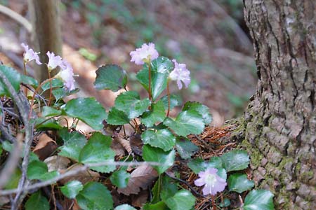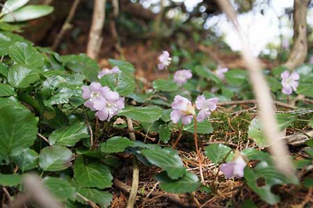 仏崎まで1.7km地点では直角に曲がり東尾根を下る | イワウチワ大群生地帯 | |||