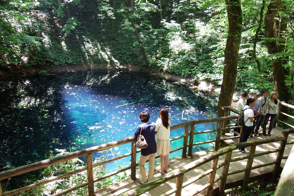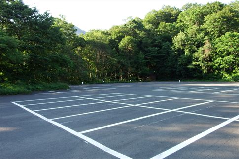 キョロロ物産館有料駐車場/トイレあり 登山者より青池観光客の車で賑わう |