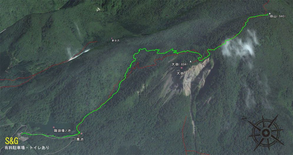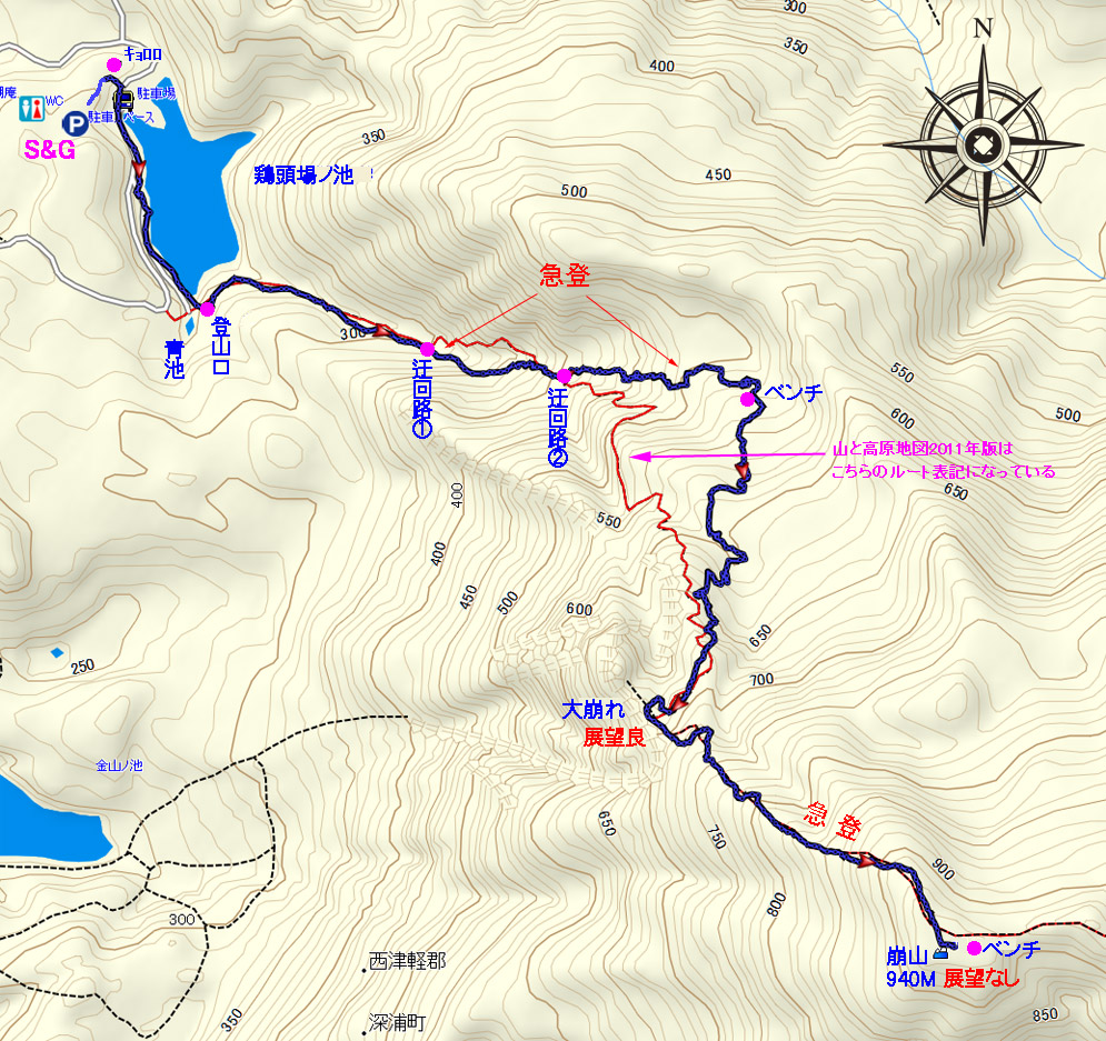 崩山ルートMAP (計曲線 50M 主曲線 10M) |