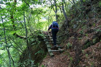 木製はしご 稜線出合まで4箇所のはしご場あり |