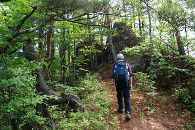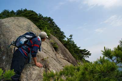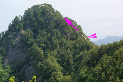 目指す京ヶ倉 | とどの背岩を巻いて岩稜部を登り込む | |||