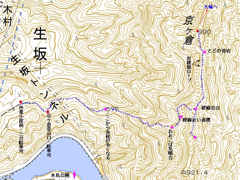 京ヶ倉登山地図 | ||||