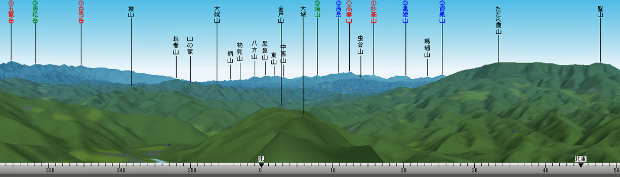 京ヶ倉 990m 京ヶ倉からのパノラマ図解あり |