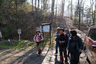 こや城登山口で自己紹介 | 岐阜隊6名・長野隊4名の大人数で出発 | |||