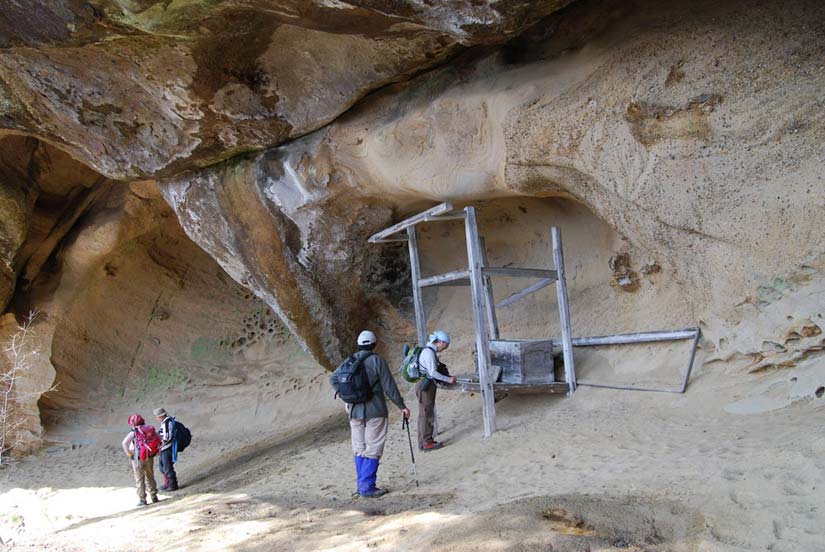 ガンゲ(洞窟まで30分)で休憩中/この辺りからクサリ場が連続する | ||||