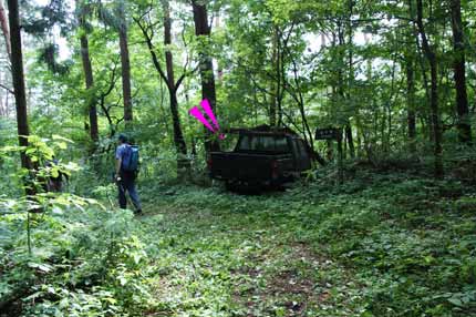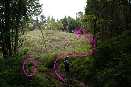 何のために、こんな道を造ったんだか??? | ↑ この指導標が目印だよ | |||