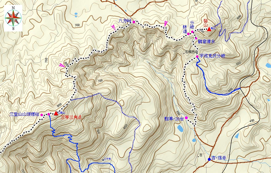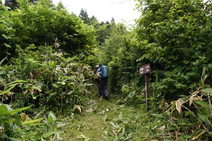 林道終点出合い・髻山まで300m地点 | 髻山へ | |||