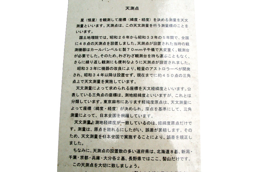 天測点 全国48点しかない貴重な天測点が髻山に設置されている |