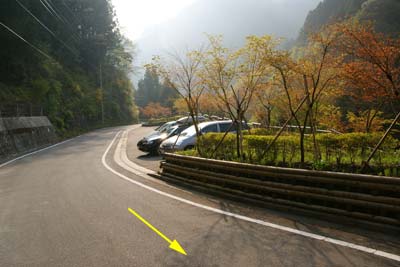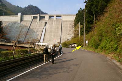 ダム下の駐車場 | 大仁田ダム・登山口(矢印)とトイレ | |||