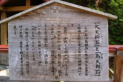 登山口には竜王宮の御神体「大天狗石と烏天狗石」が祀られている | ||||