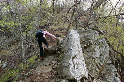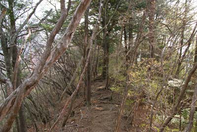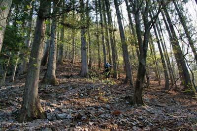 鞍部から大岩横の杉林をひとがんばりして | 尾根筋に出ると・・・ | |||