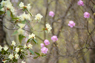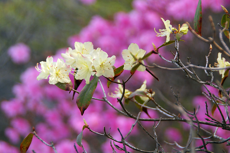 ヒカゲツツジとアカヤシオの競演が始まる | ||||