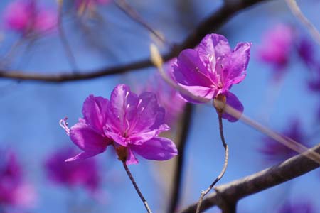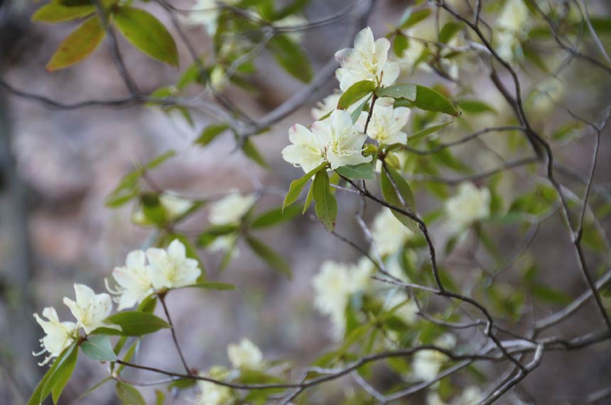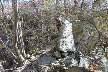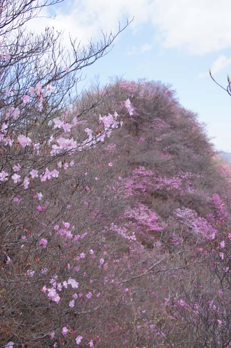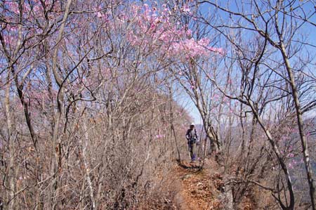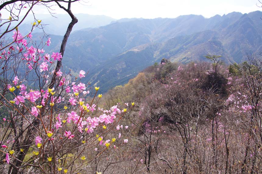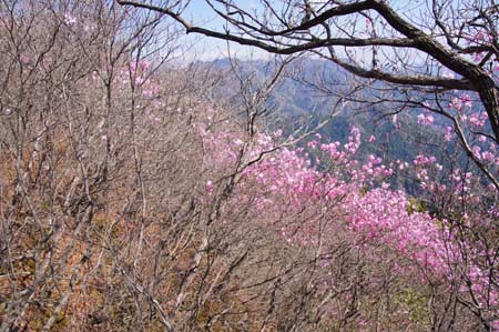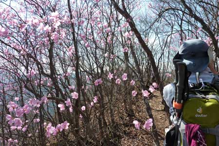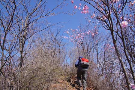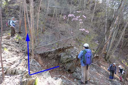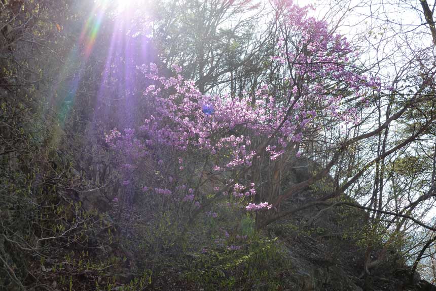 植生が杉林から広葉樹林に変わるとミツバツツジがお出迎え | ||||