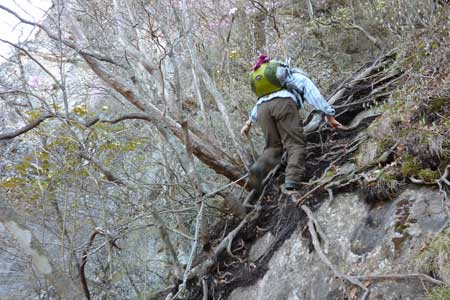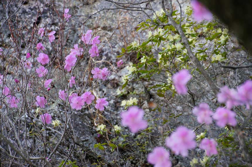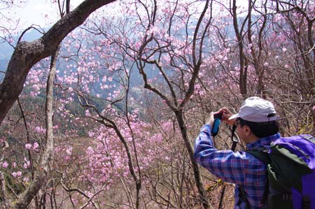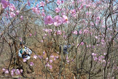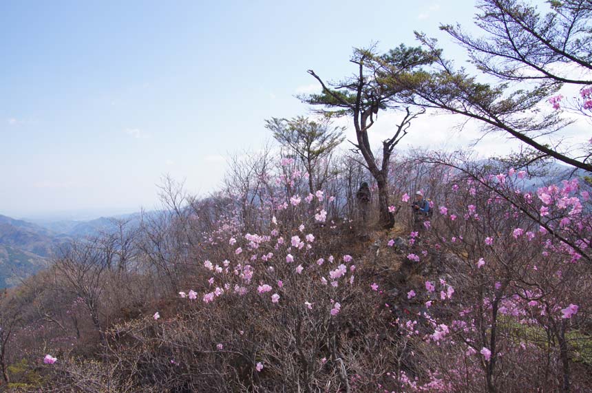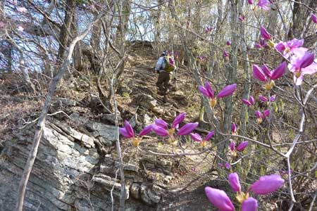上写真のロープ地点ではヒカゲツツジとアカヤシオの競演を楽しめる | ||||